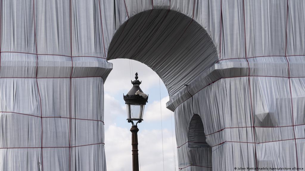 El día 18, después de que su taller remate el proceso que empezó christo, se presentará el arco del triunfo empaquetado con 25.000 metros cuadrados de tejido polipropileno reciclable azul. .. Una década después, christo comenzó a crear gigantescas obras con tela, las cuales tenían como fin cambiar la manera como las personas ven su entorno y se relacionan con él.